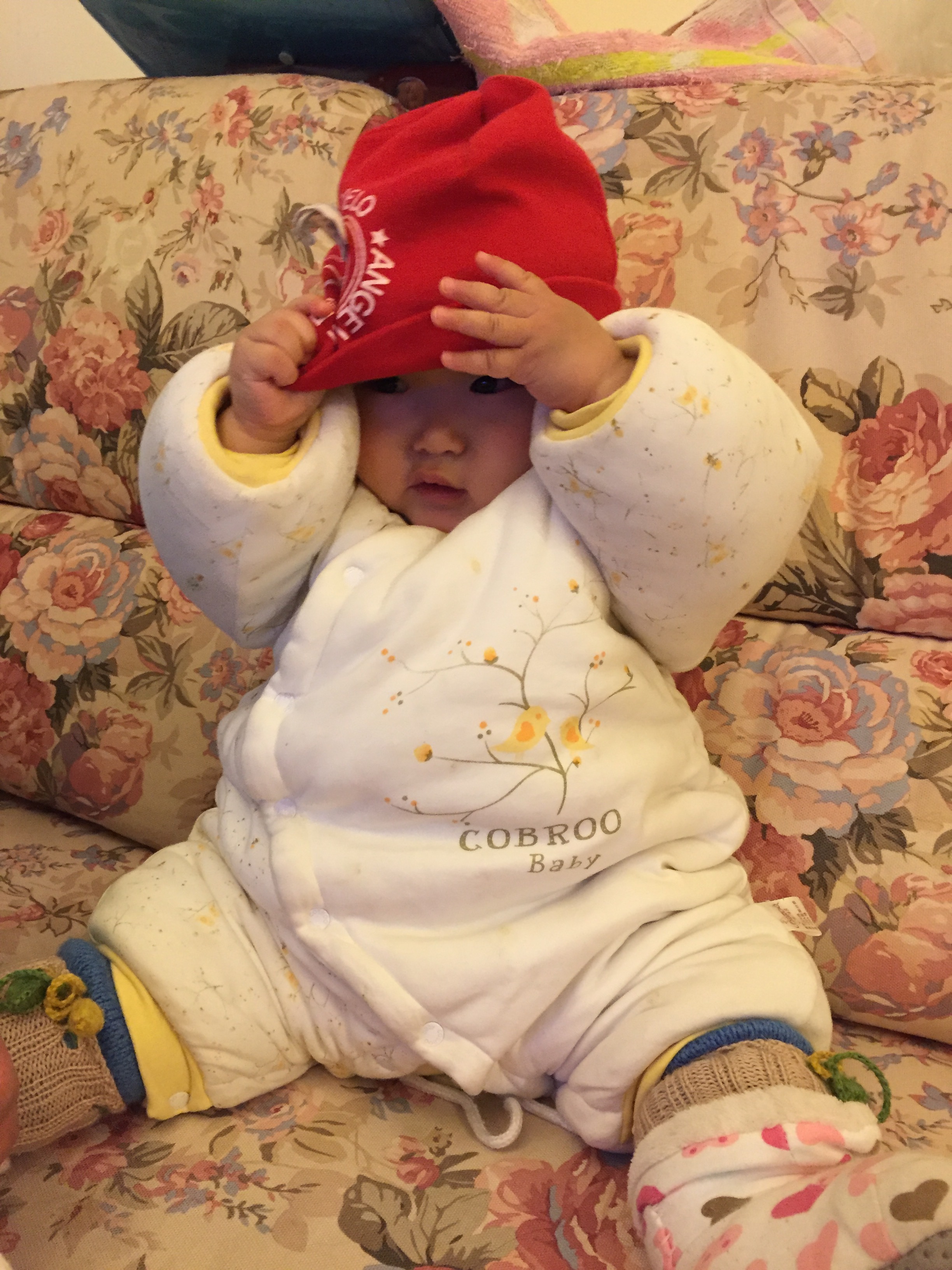 那就是我的白色毛巾,每天我都要摸着它睡觉,看见它就像看见了我的妈妈.